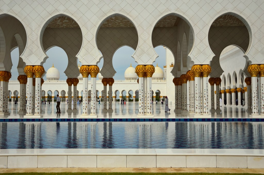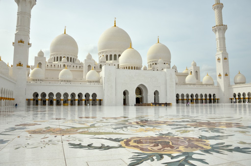 6. La moschea di Abu Dhabi: ok, non è a Dubai. Ma non è pazzesca? Ti lascia a bocca aperta dal primo momento in cui entri, fino a che ti allontani vedendola in lontananza. Così bianca e silenziosa, già da sola vale il viaggio fino a lì: la Grande Moschea dello sceicco Zayed è piena di piscine azzurre e lampadari di Swarovsky e vi garantisco che vi regalerà delle foto bellissime.